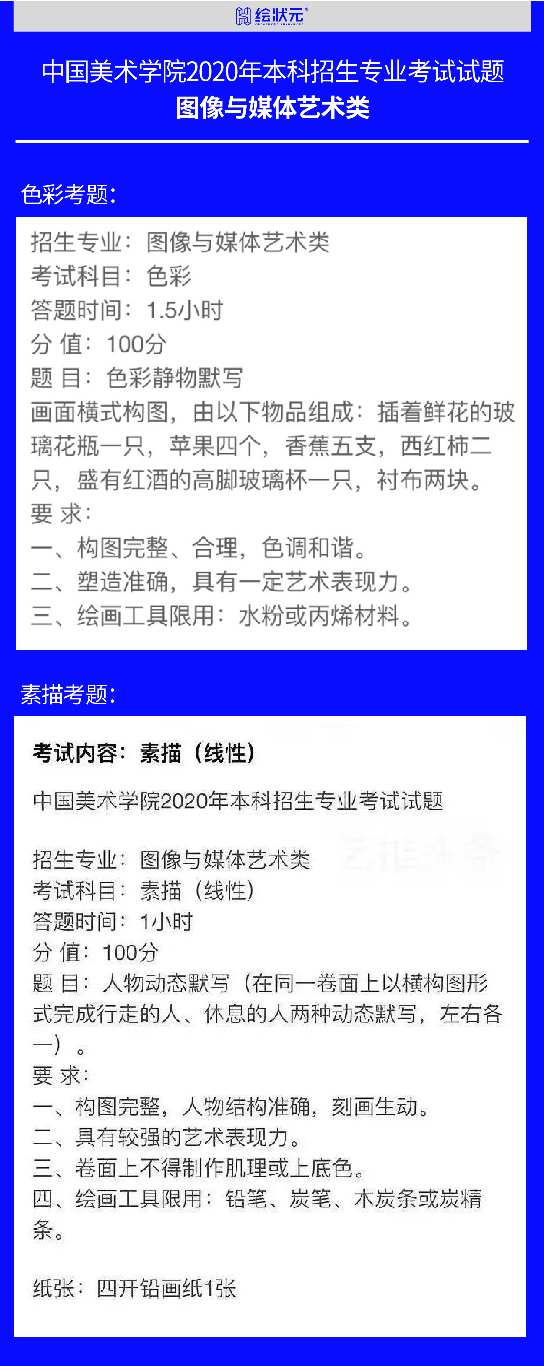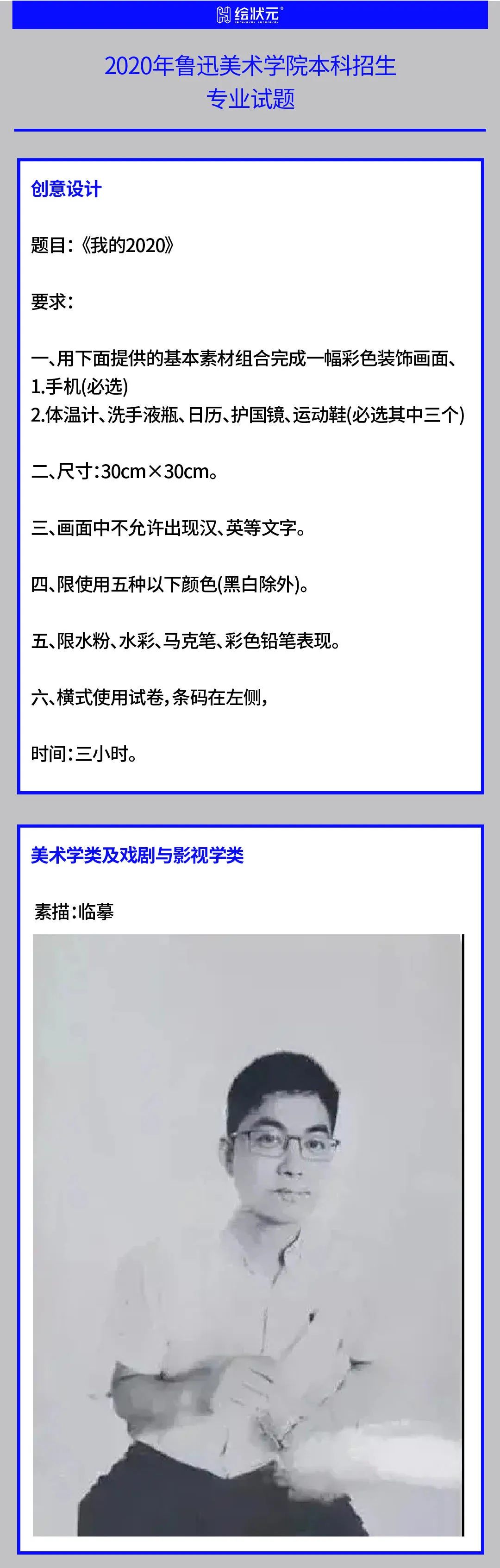 2020届中国美院采取线上校考模式,绘状元画室立即集中教研,并迅速录制应考视频。