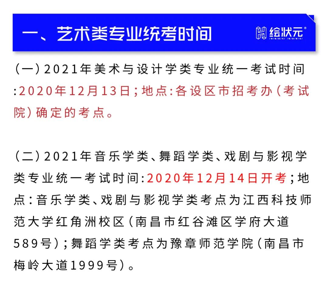 2021年江西美术联考时间:12月13日